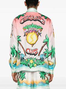 Serve up some serious style in this rose pink Casablanca Tennis Club shirt! With its playful all-over graphic print, you'll be turning heads on and off the court. The front button fastening makes it a breeze to slip on, while buttoned cuffs add that touch of polish. The straight hem keeps things neat whether you're tucking it in or letting it loose. Game, set, fashion match!