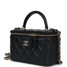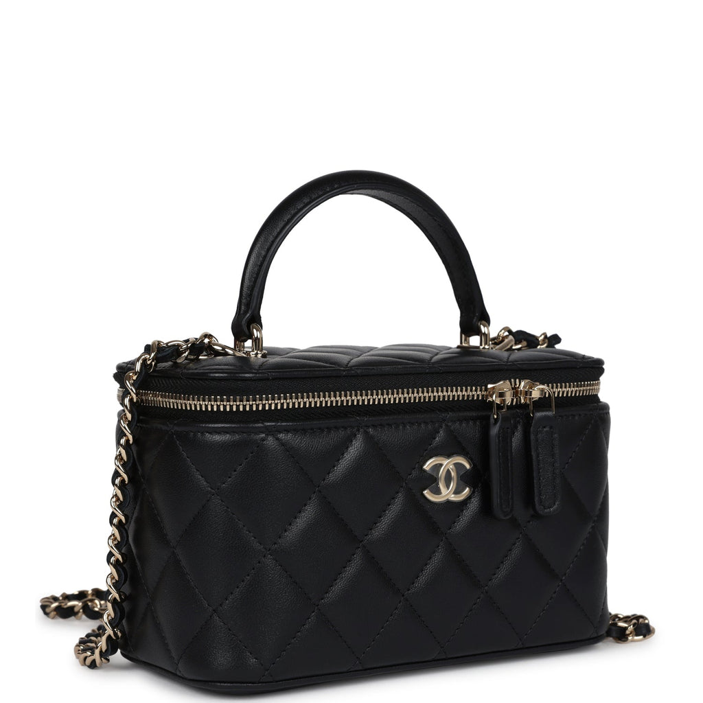 Chanel Small Top Handle Vanity Case Black Lambskin Light Gold Hardware