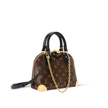 This Trunk-inspired edition of the Alma BB revisits Louis Vuitton’s travel heritage with elevated detailing. Crafted from signature Monogram canvas and trimmed with black leather, it features polished corner hardware, gold-toned studs, and the maison’s emblematic padlock. Carry it by hand, on the shoulder, or crossbody with its removable chain and adjustable strap.