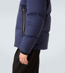 This Ink Blue hooded puffer jacket, crafted in Italy, delivers exceptional warmth in a sleek, padded silhouette. A two-way zip closure with snap-button detailing, zipped pockets, and a drawstring hem allow for adjustable comfort and streamlined function, while the hood adds an extra layer of protection.
