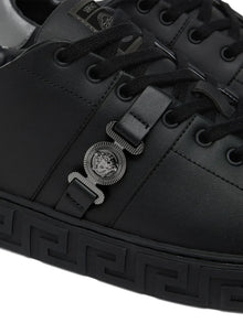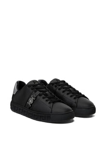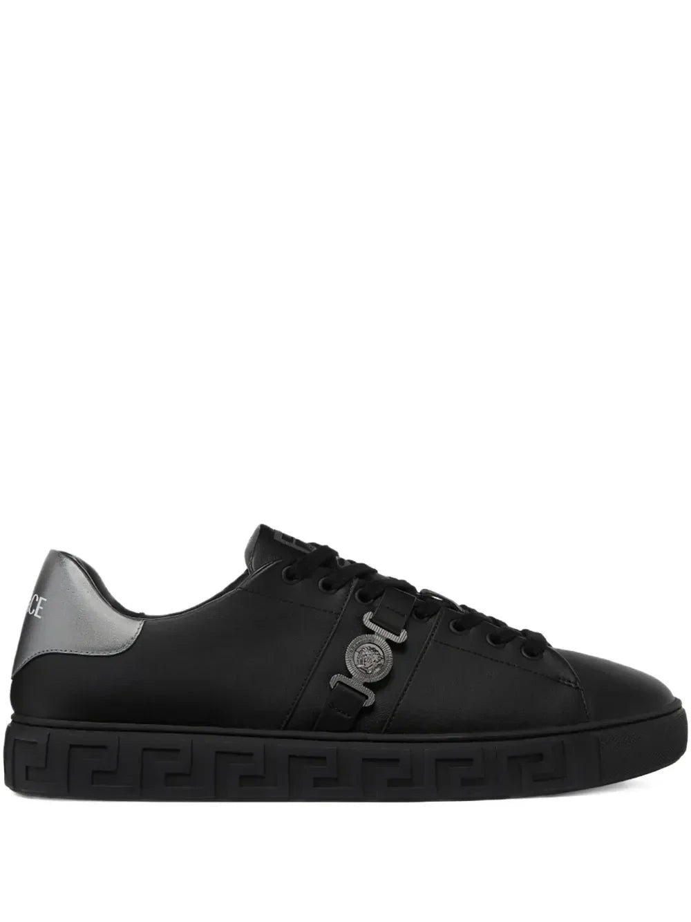 Versace redefines the everyday sneaker with the Greca La Medusa design, merging bold house codes with contemporary comfort. Crafted from smooth black calf leather, the pair is accented with the signature La Medusa embellishment and set atop a sculpted rubber sole for a statement finish.