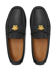 Step into style with Versace's La Medusa loafers. Crafted from luxurious calf leather and lined with soft goat skin, these black slip-on shoes feature a striking Medusa plaque embellishment, signature logo and Greca detailing, as well as a playful penny slot and stitched accents. (No serious shoe collection is complete without them!)