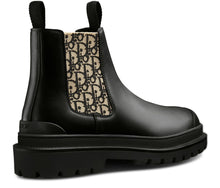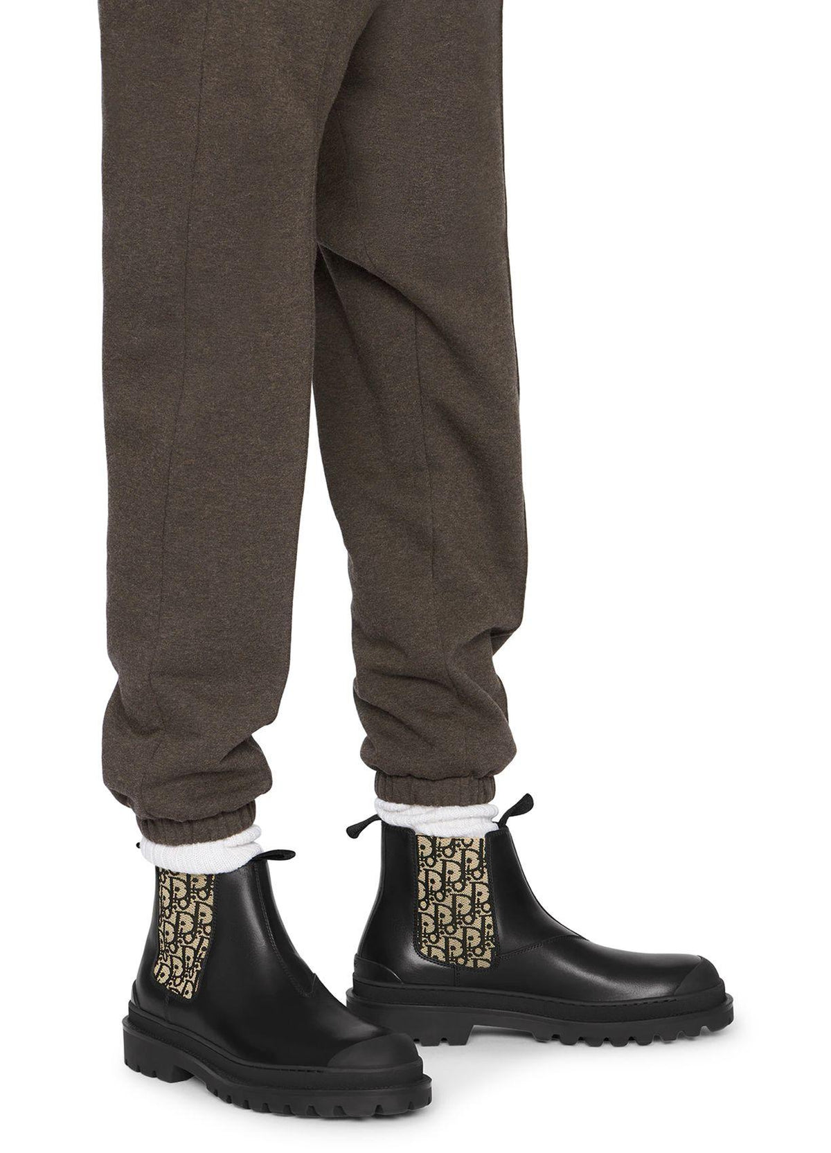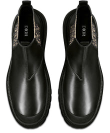 Effortlessly stylish and comfortable, these Chelsea boots are a must-have for any fashion-forward individual. The beige and black elastic side bands featuring the iconic Dior Oblique motif not only add a touch of sophistication, but also provide a snug fit. Made with high-quality smooth calfskin and a reinforced rubber sole, these boots are built to last. The 3.5 cm heel height offers a subtle lift while still being comfortable for everyday wear. Step out in style with the 'DIOR' signature on the sole, making a statement with every step.