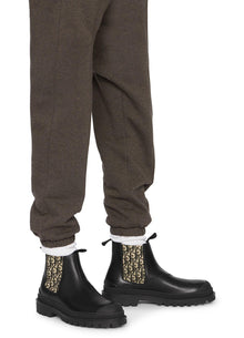 DESCRIPTION : Beige and black elastic side bands with Dior Oblique motif, 'DIOR' signature on the sole, high-top, pull-on style, reinforced rubber toe and notched outsole, welded, side-sewn construction.