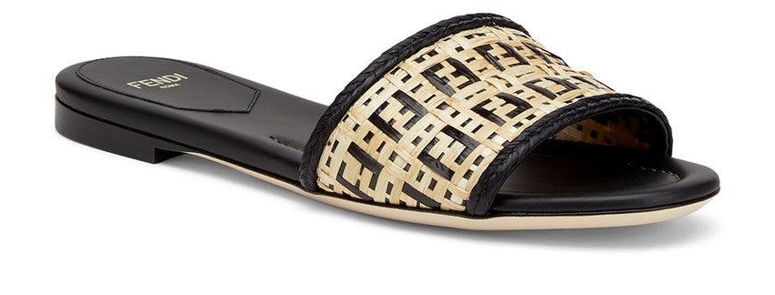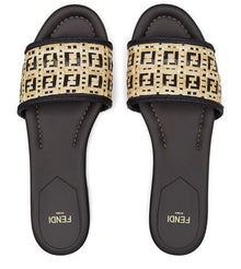 FENDI Claquettes en raphia beige