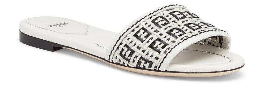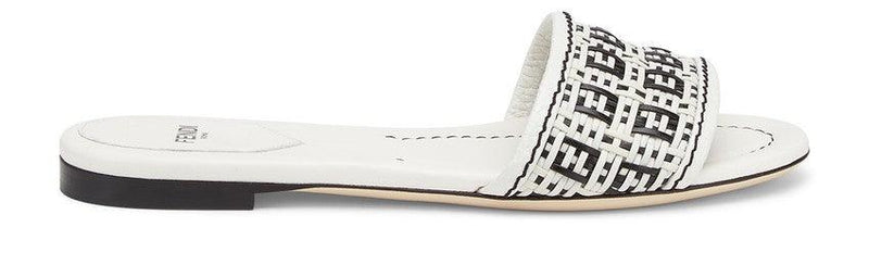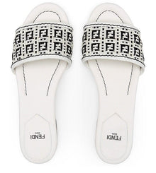 Fendi Blanc Nouveau Ff Logo Monogramme Entrelacé En Cuir Diapositives Appartements Sandales À Enfiler