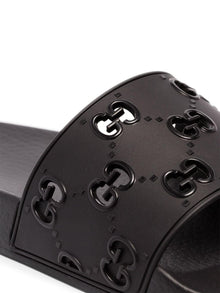 Sandale à glissière GG en caoutchouc Gucci en noir