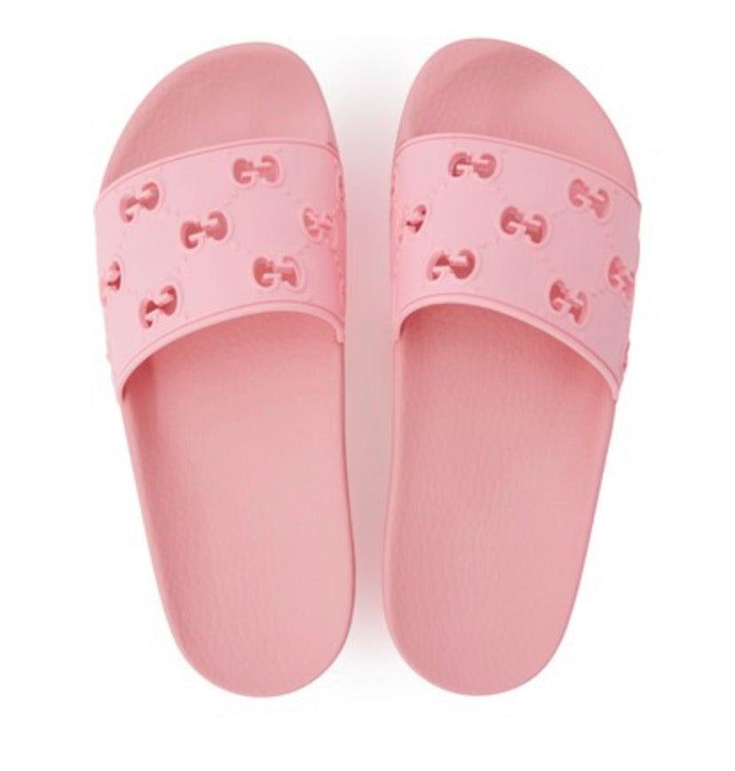 Sandale à glissière GG en caoutchouc Gucci en rose
