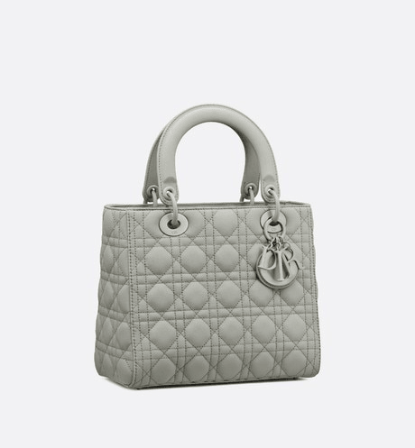 SAC DIOR MEDIUM GRIS STONE LADY DIOR EN CUIR DE VEAU MAT