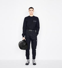Sweat en molleton de coton noir avec broderie DIOR AND RAYMOND PETTIBON blanche sur la poitrine et dans le dosShipping & Returns