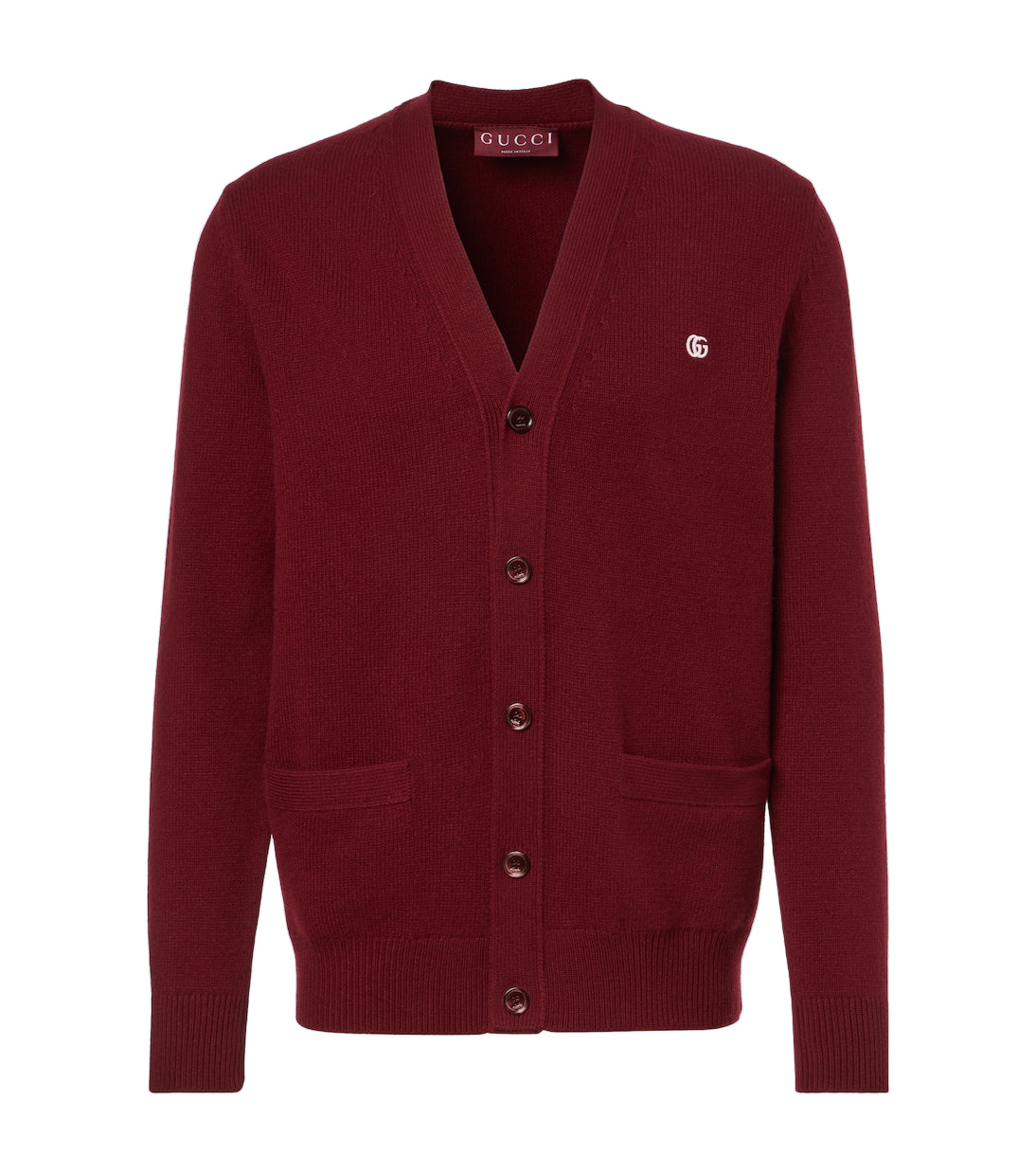 This Gucci cardigan is crafted in Italy from wool and cashmere, showcasing the label's refined craftsmanship. The piece features a V-neckline and the signature GG embroidery on the chest.