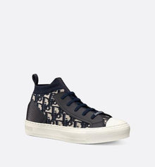 Sneaker Walk'n'Dior en maille technique Dior Oblique avec empiècements en cuir de veau bleu.