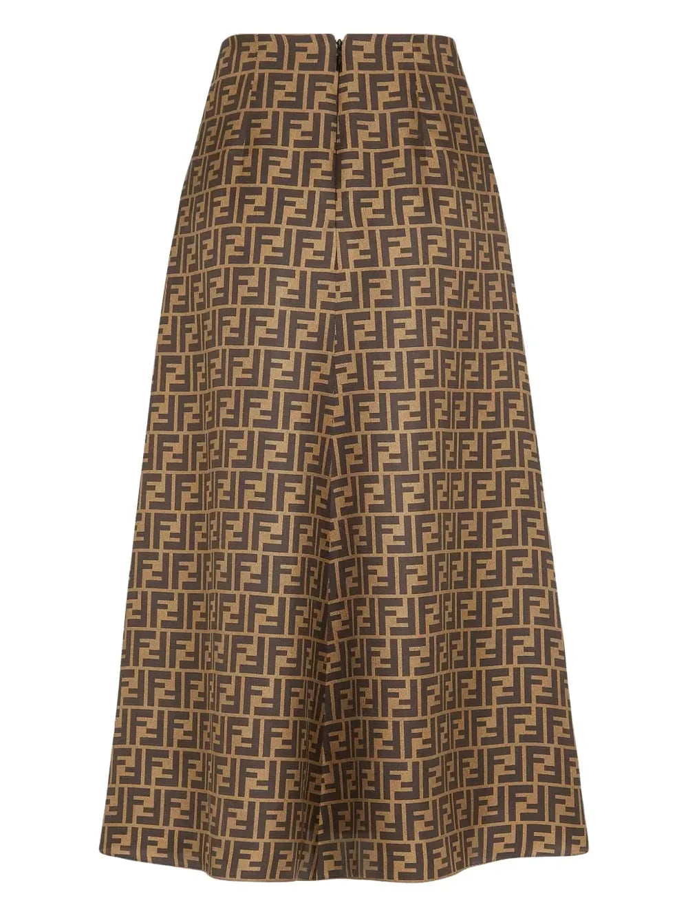 This brown Fendi skirt showcases the signature FF print with a sleek high waist design that enhances your silhouette. Featuring a discreet back zip fastening, it combines elegance with ease of wear. Perfect for adding a touch of luxury to any outfit, this skirt is a must-have for a refined and confident look.