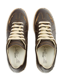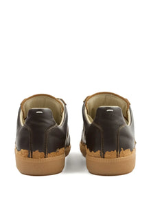 Step into timeless style with the Maison Margiela Replica cedar brown sneakers. Featuring a front lace-up fastening and a flat rubber sole, these sneakers offer both comfort and a secure fit. The signature single-stitch logo adds a subtle touch of luxury, while the branded insole ensures lasting quality. Perfect for elevating your everyday look with understated elegance.