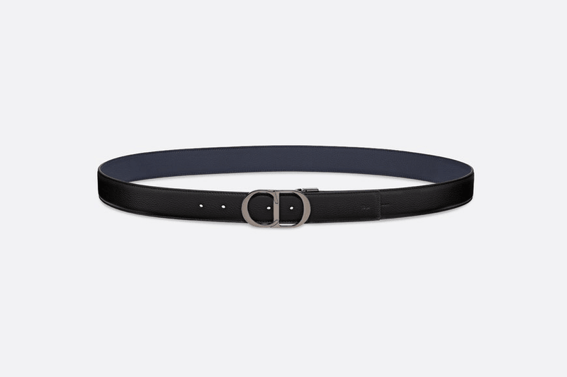 CEINTURE DIOR 35 MM HOMME EN CUIR DE VEAU GRAINÉ NOIR ET BLEU MARINE