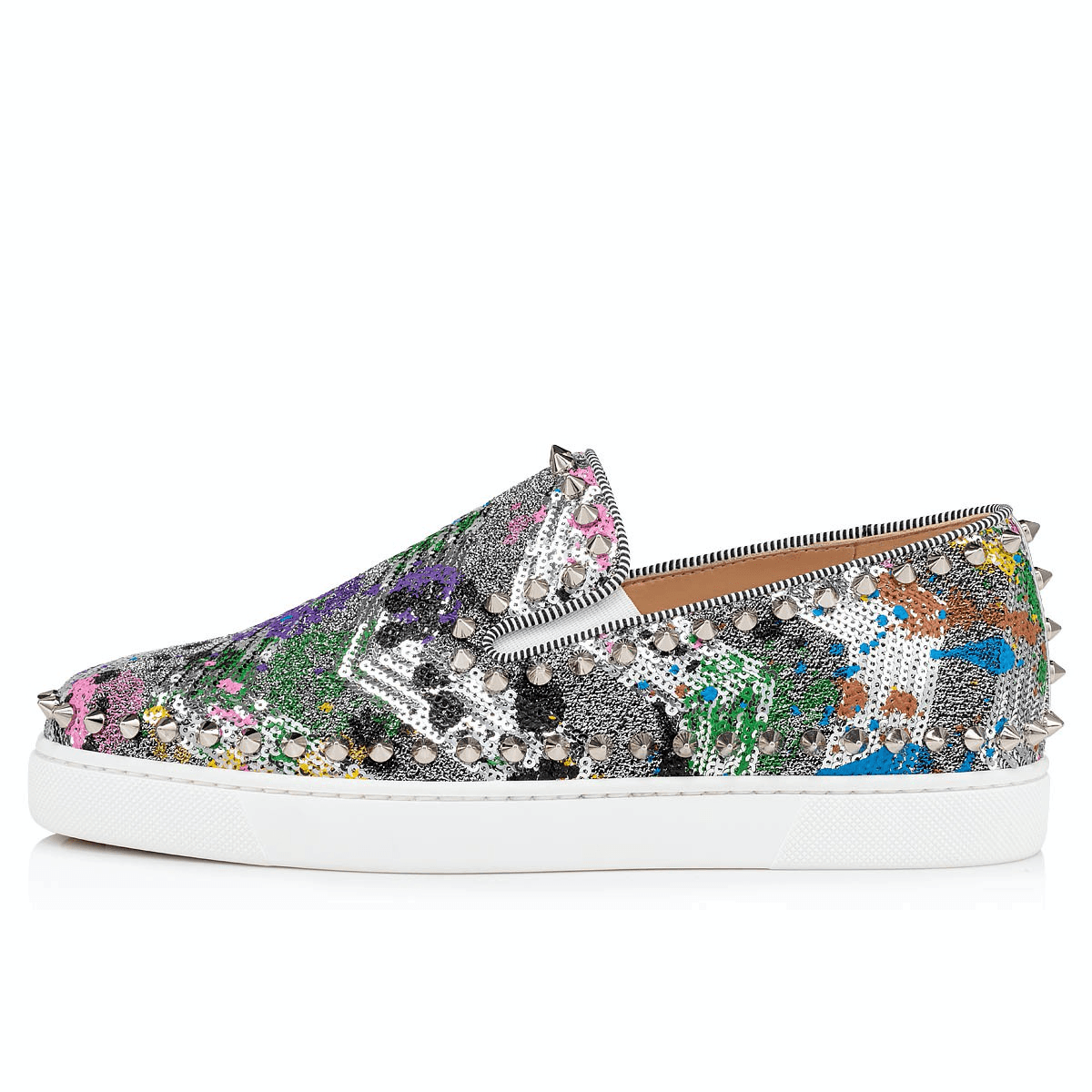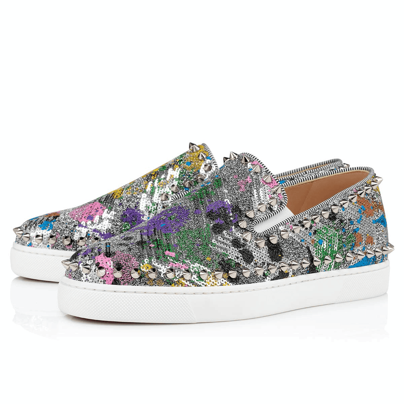Entre sneaker et chaussure bateau, la Pik Boat allie parfaitement sophistication et aisance. Montées sur une semelle en caoutchouc blanc, elles sont réalisées en Paillette Splash multicolore et profilées en picots. La tige est dotée d'une finition passepoil en gros grain en cuir specchio, révélant le savoir-faire de la Maison Christian Louboutin.