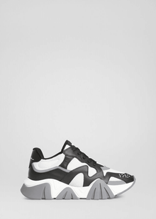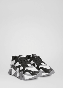 Inspirée de l'anatomie du grand requin blanc, la semelle extérieure des baskets Squalo évoque la forme des mâchoires de l'animal. Les détails en cuir imprimé Barocco arborent les surpiqûres emblématiques de Versace pour célébrer l'héritage de la marque. Le logo est présent sur la langue. Autre code maison : Medusa est cachée dans la semelle extérieure, ajoutant une subtile dose de décadence.