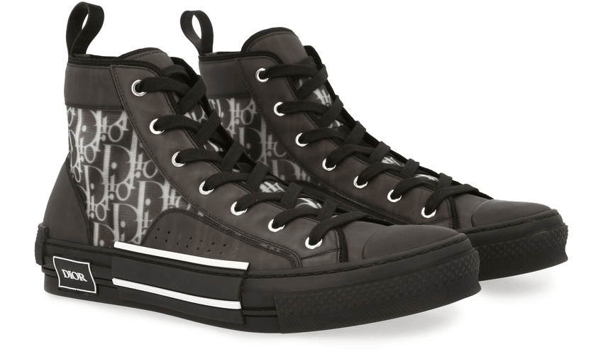 sneaker montante en toile technique Dior Oblique transparente noire et blanche et cuir de veau noir, semelle en caoutchouc noir et blanc, logo "Dior".Shipping & Returns