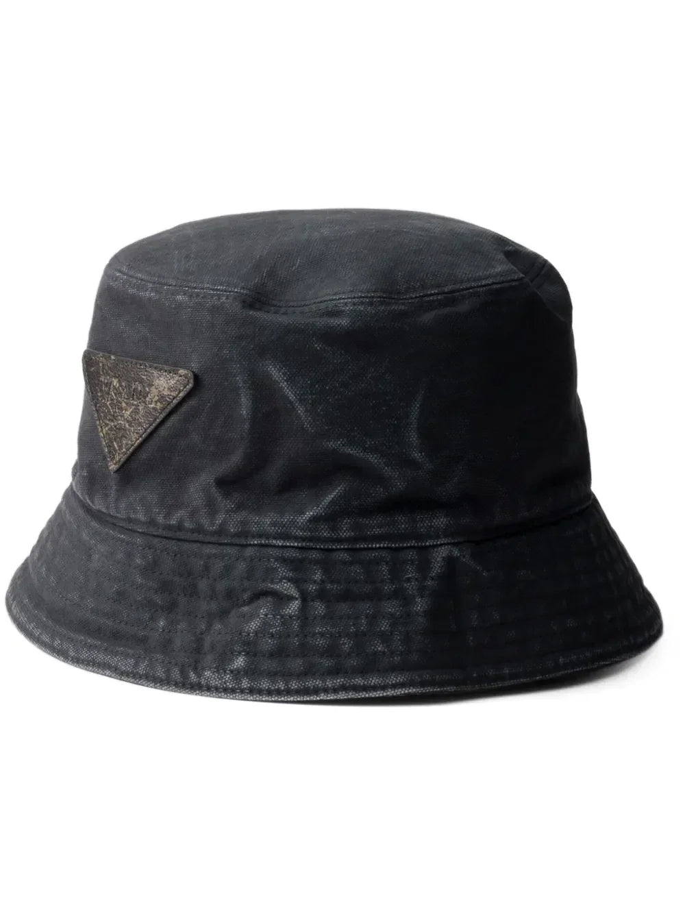 This cotton bucket hat from Prada is both stylish and practical. With a washed black color and decorative stitching, it's perfect for any outfit. The flat crown and dropped wide brim provide comfort and sun protection, while the triangle logo adds a touch of elegance. Made with 100% cotton, it's a must-have for any fashion-forward individual.