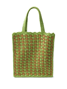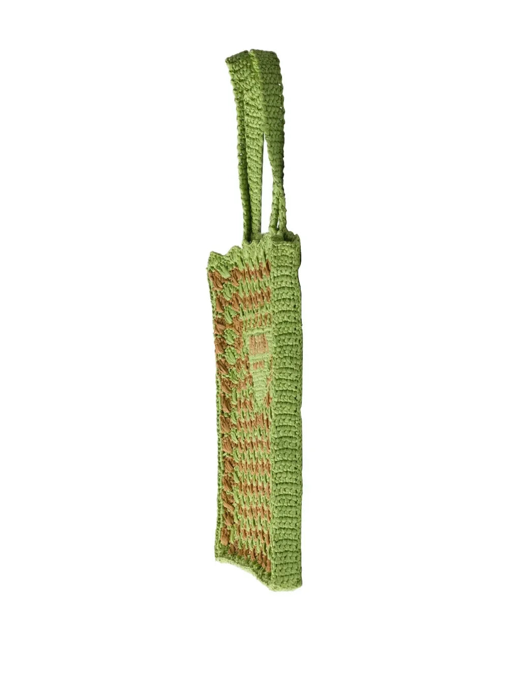 This crochet tote bag in avocado green is perfect for a day out or a trip to the beach. With an open top and two long handles, it's both stylish and functional. Embroidered with the Prada logo and unlined, it's made of 100% paper yarn. (Fun fact: it's also biodegradable!)