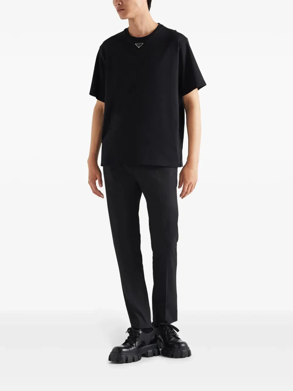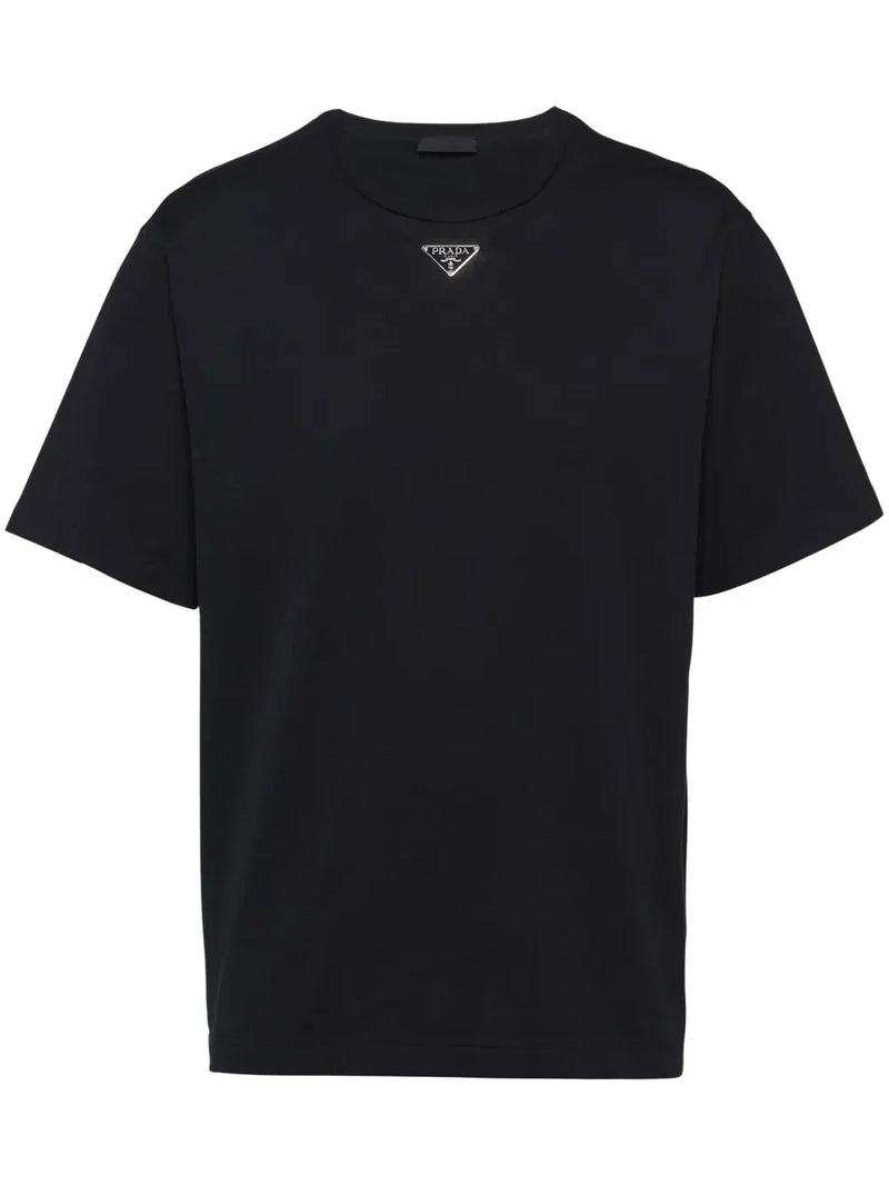 Experience understated luxury with the Prada triangle-logo cotton T-shirt. Made from soft, breathable cotton, this tee showcases Prada’s iconic triangle logo through a sleek enamel plaque positioned just below the crew neckline. Combining comfort with a distinctive designer detail, it’s the perfect piece to elevate your everyday style with a subtle yet unmistakable signature.