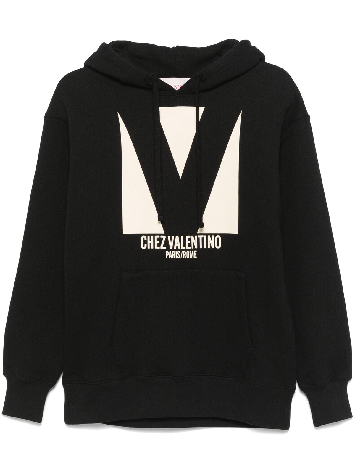 Get ready to turn heads with the Valentino Garavani Chez Valentino hoodie. Made with 100% cotton, this ready-to-wear piece exudes luxury and comfort. Featuring a drawstring hood, drop shoulder, and front pouch pocket, this black hoodie is the perfect blend of style and functionality. Stay on-trend with Valentino.