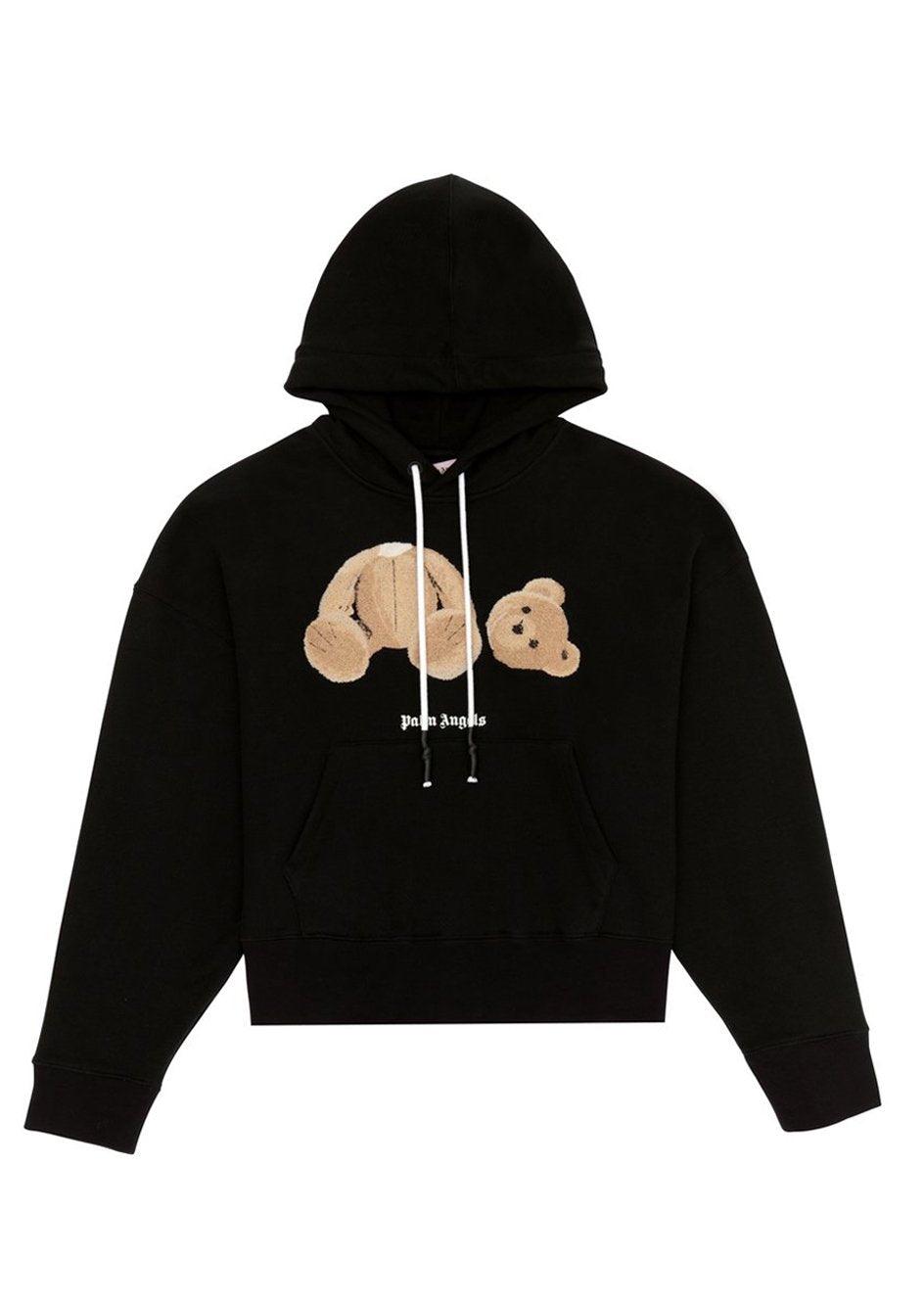 SWEAT-SHIRT À CAPUCHE À MANCHES LONGUES NOIR AVEC GRAPHIQUE "BEAR" ET LOGO "PALM ANGELS" IMPRIMÉS SUR LE DEVANT.