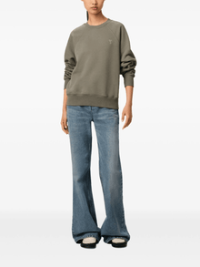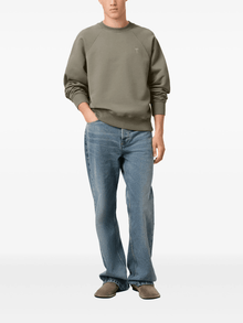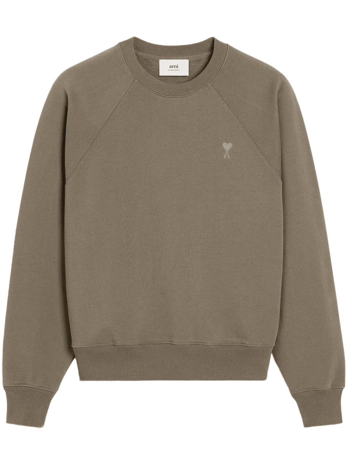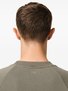 Unisex AMI Paris sweatshirt with embroidered logo in back. Green, crew neck, and long raglan sleeves make it a standout piece. Made of 100% cotton. Perfect for adding a playful yet stylish touch to any outfit. Sizing is based on standard men's sizes.