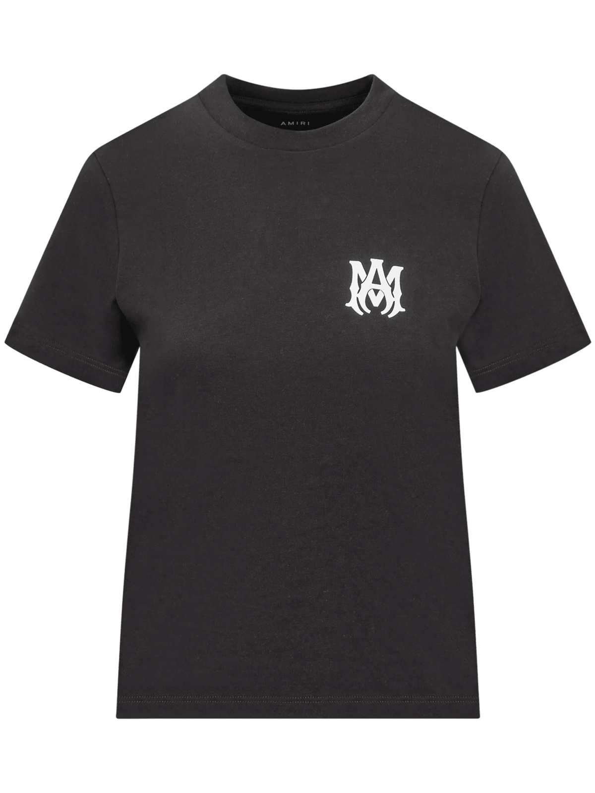 Elevate your street style with the AMIRI Ma Core T-shirt. Made from 100% cotton, this black crew neck tee features a bold logo print at the chest and back. Perfect for everyday wear, it effortlessly combines comfort with style. Don't miss out on this must-have piece!