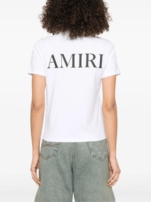 Make a statement with the AMIRI Ma Core logo T-shirt. This white tee features a classic crew neck and short sleeves, perfect for everyday wear. The logo print on the chest and rear adds a touch of understated cool. Made of 100% cotton for comfort and durability.