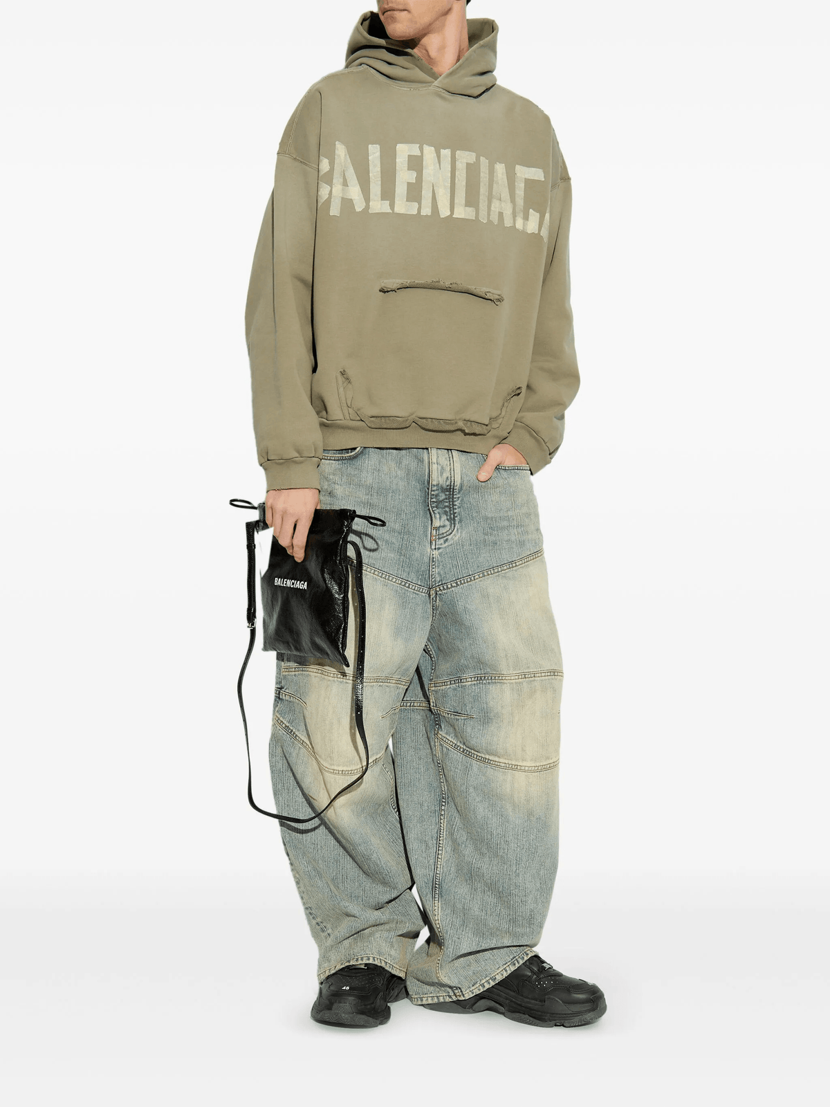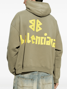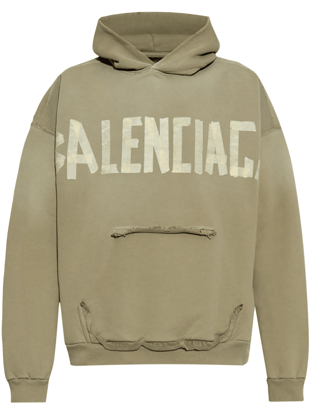 Get ready to make a bold statement with the Balenciaga Tape Type hoodie! The eye-catching green color and iconic front pouch pocket make this hoodie a must-have for any fashion-forward individual. The drawstring hood and long sleeves ensure comfort and style all day long. Made with 100% cotton for the ultimate wearability.