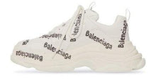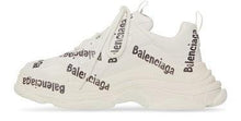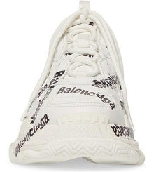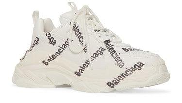 A bold sneaker designed for the modern seeker of luxury, the Balenciaga Triple S logotype sneaker is crafted with a technical material and leather-free body, featuring a printed allover logo, complex 3-layered outsole, embroidered size detail, tongue pull-on tab, and unique lacing system. Expertly crafted , this sneaker is the perfect combination of fashion and function.