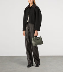 The Andiamo bag captures Bottega Veneta’s philosophy of understated luxury—bold in craftsmanship yet refined in expression. Woven in the Maison’s iconic Intrecciato leather, this Small edition arrives in a distinctive Pickle tone and is finished with signature knot hardware. Designed for modern movement, it features a sleek sliding leather strap and a structured interior that transitions effortlessly from city days to evening elegance.