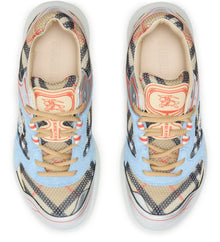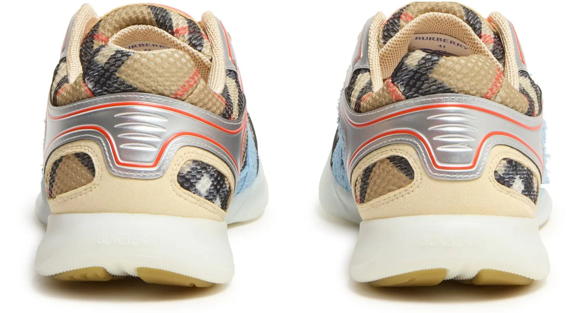 Burberry’s Matrix sneakers fuse the house’s iconic heritage with modern performance style. Featuring the signature Burberry Check and Equestrian Knight Design, they combine statement branding with breathable open-weave panels, rubber overlays, and a secure lace-and-strap closure for a confident fit.