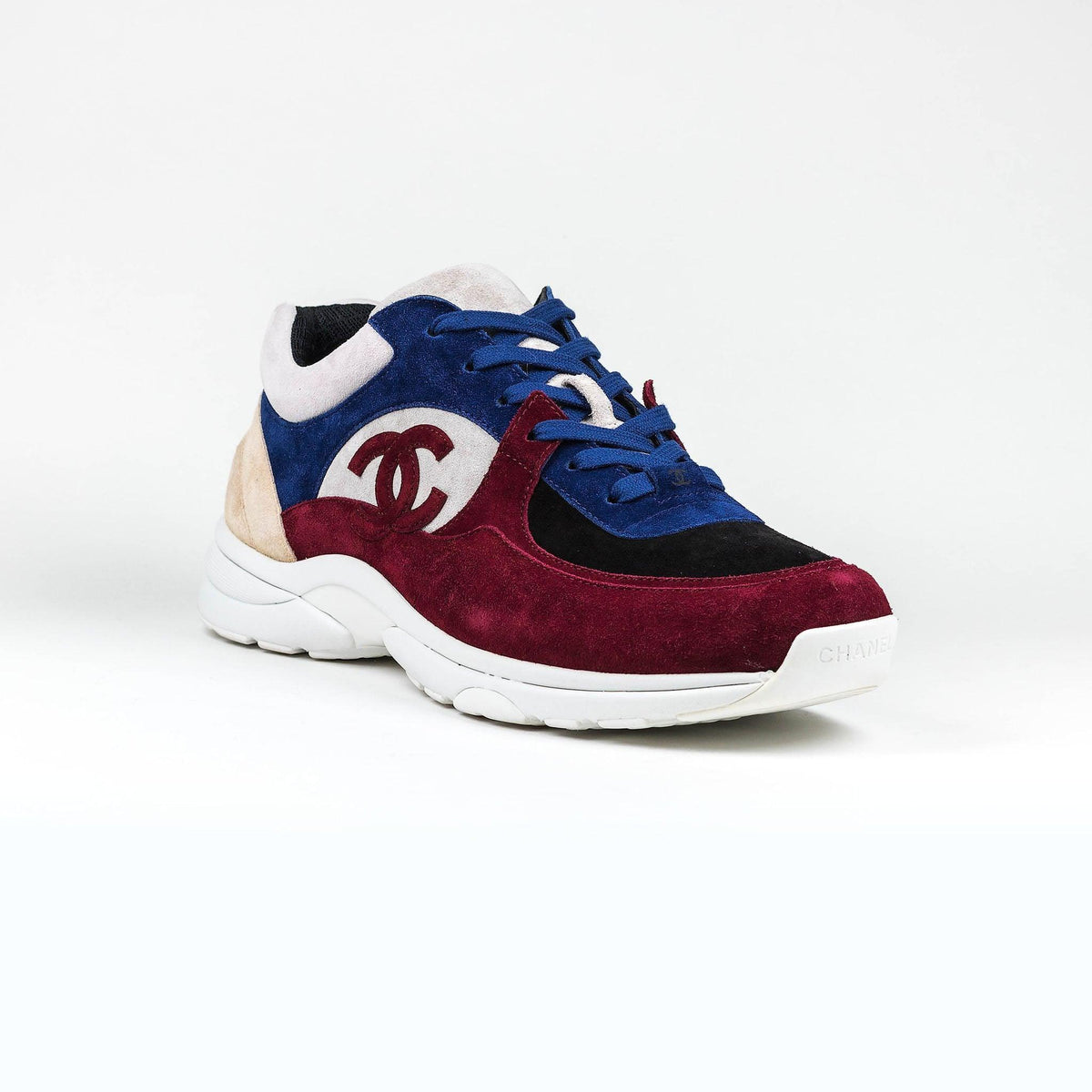 Men CHANEL CC LOGO BURGUNDY BLUE BEIGE SUEDE SNEAKER