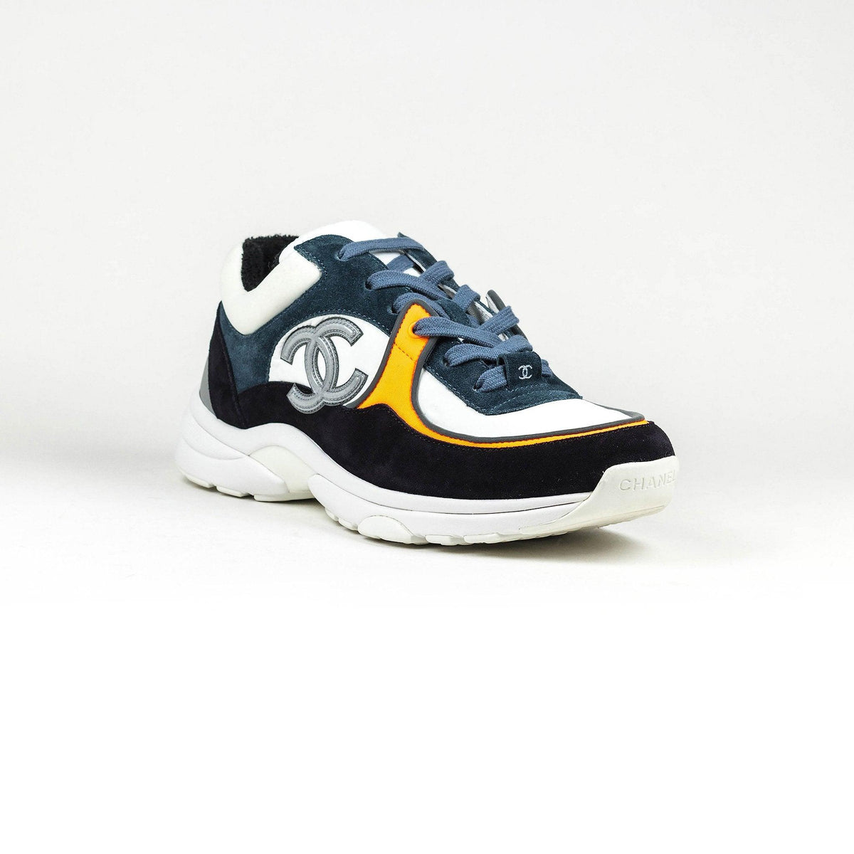 WOMEN CHANEL CC LOGO SUEDE NYLON WHITE ORANGE BLUE SNEAKER