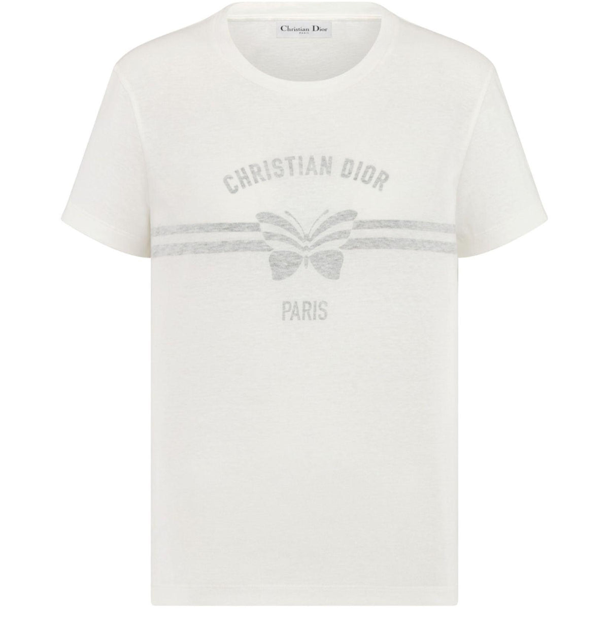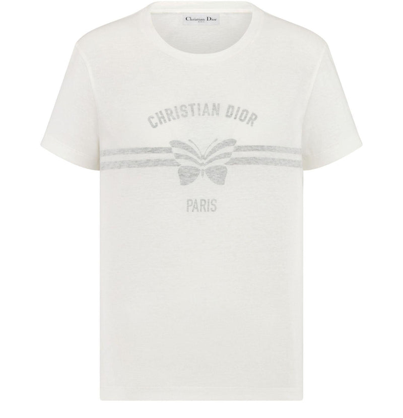 Show off your playful side with this DIOR T-shirt. Made with a lightweight blend of cotton and linen, featuring a unique Christian Dior Papillon motif on the front. Treat it with extra care and gently dry clean for a long-lasting statement piece. Available in 0930 Fantaisie Blanc.