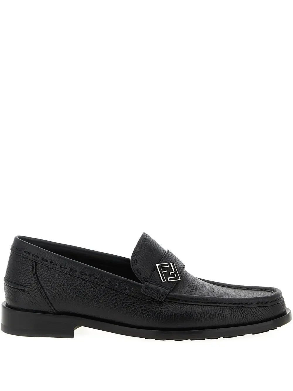 Elevate your style with these Fendi FF metal leather loafers crafted from smooth black calf leather. Featuring the iconic Fendi initials and detailed stitching, they combine luxury with meticulous craftsmanship. The durable rubber sole ensures comfort and grip, making these loafers perfect for both polished and casual looks. Step confidently with a timeless design that speaks sophistication.