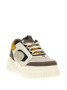 Step into style with the FENDI Force yellow gray sneakers. These unique kicks feature a front lace-up fastening, branded insole, and rubber sole for ultimate comfort. The embroidered motif adds a touch of whimsy to these trendy sneakers. (Get ready to turn heads!)