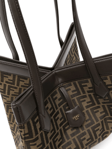 Make a statement with the FENDI large Origami leather tote bag. Crafted with brown leather trim, this bag features an all-over FF motif and a multifaceted body. Complete with a charm detail and logo lettering, it also has two top handles, a main compartment, and internal slip pockets. Perfect for everyday use, it also comes with a protective dust bag.