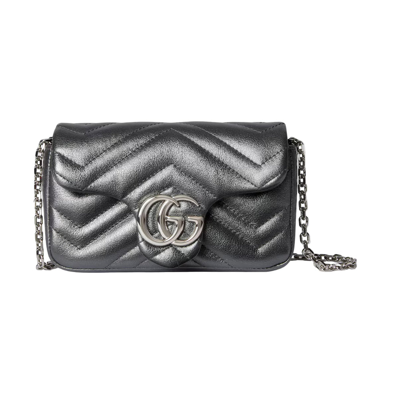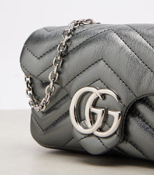 Crafted in Italy from quilted metallic calf leather in a refined Piombo grey, the design features soft, sculptural lines paired with silver-tone hardware and the signature Double G emblem, creating a statement of modern glamour.