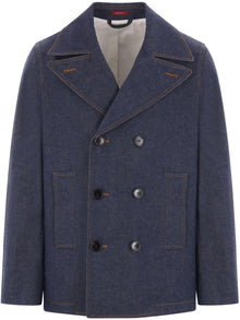 Elevate your style with the Gucci denim blazer. Made from 100% cotton, this double-breasted blazer features a striking indigo blue color, two side welt pockets, and an American rear vent. The perfect blend of fashion and function, it will make you stand out in any crowd.