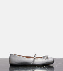 Gucci brings new dimension to its iconic equestrian heritage with the Horsebit ballet flats, crafted in Italy from metallic Argento lamb leather. The silhouette pairs a contemporary square toe with the house’s signature Horsebit hardware, creating a blend of classic refinement and modern shine. Elegant, versatile, and instantly recognizable—this is Gucci’s heritage, reimagined in silver.