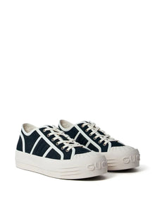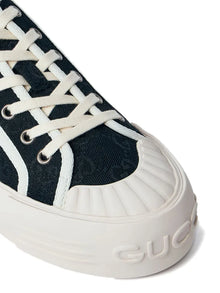 Step out in style with these Gucci logo-motif panelled chunky sneakers. Featuring sleek black panel construction and a sturdy platform sole, they offer both bold fashion and comfortable support. The round toe and lace-up fastening ensure a secure fit, while the signature GG canvas adds a touch of iconic luxury to every step. Perfect for elevating your casual looks with unmistakable designer flair.