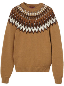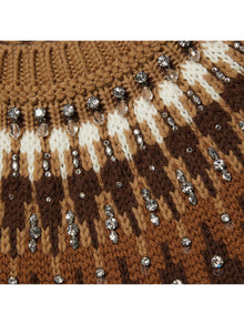 Experience luxury and elegance with our Gucci Norwegian sweater. Made with 100% wool, this sweater features a camel brown hue and ribbed cuffs and hem for a cozy fit. The crew neck and long sleeves add a classic touch, while the crystal embellishment adds a touch of sparkle to your style.