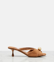 Jimmy Choo’s Siva mules strike the perfect balance between bold embellishment and refined elegance. Crafted in Italy from rich suede, the square open-toe silhouette is adorned with polished gold-tone orbs, adding sculptural sophistication to this modern design.