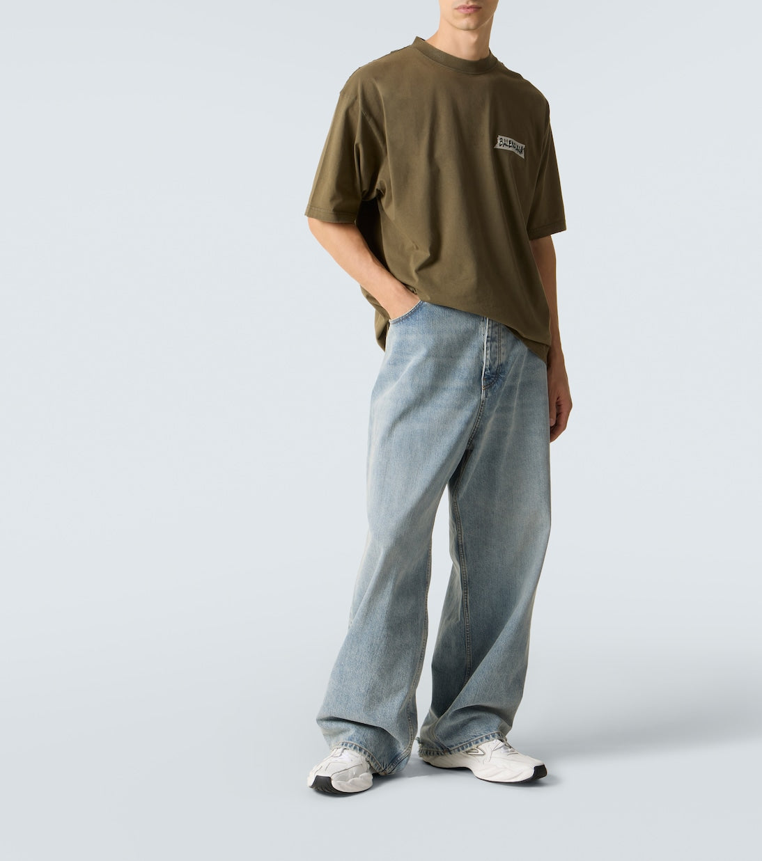 Designed in a khaki green tone, the silhouette is cut with a casual drape and finished with understated logo detailing at the chest, embodying the Maison’s minimalist approach to modern street-luxury.
