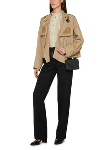 Elevate your wardrobe with the LOUIS VUITTON Pleat shoulder monogram cloud shirt. Crafted from luxurious silk toile, its elegant relaxed fit is both sophisticated and comfortable. The dreamy Monogram cloud motif adds a touch of whimsy, while pleats and a stylish officer collar with belt detail complete the look.