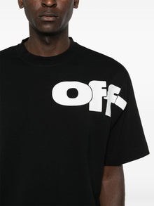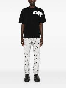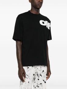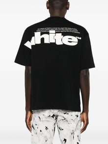 Unleash your ultimate offbeat style with the Off-White Shared Logo cotton T-shirt. Made of 100% cotton, this black and white jersey texture tee features a logo print on the chest and rear, along with a text print on the rear. The crew neck, drop shoulder, short sleeves, and straight hem add to its laid-back vibe.
