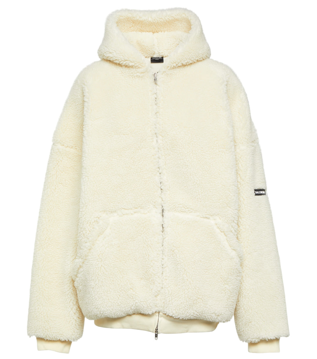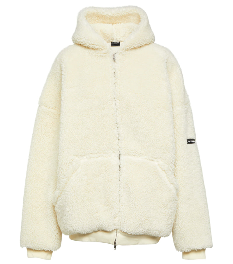 The Balenciaga Faux-Shearling Hoodie delivers elevated warmth with the Maison’s signature sculptural sensibility.